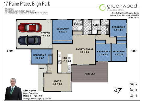 * Genuine five bedroom home