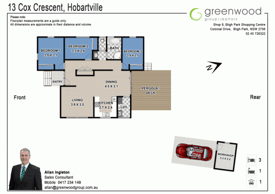 * Three bedrooms with built in wardrobes and ceiling fans to all