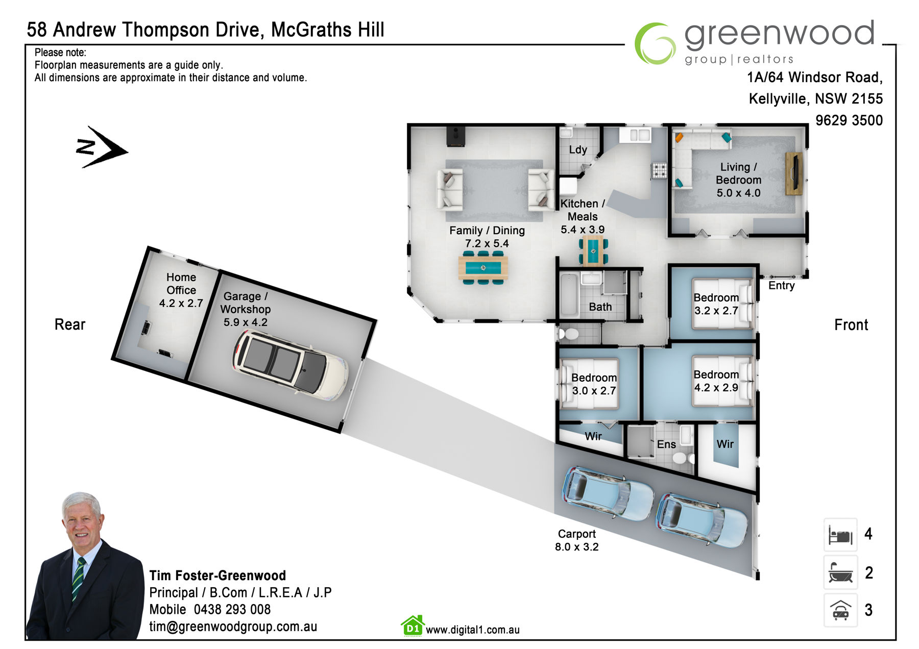 • 3 or 4 bedrooms, 2 with build-ins, main-ensuite with walk-in